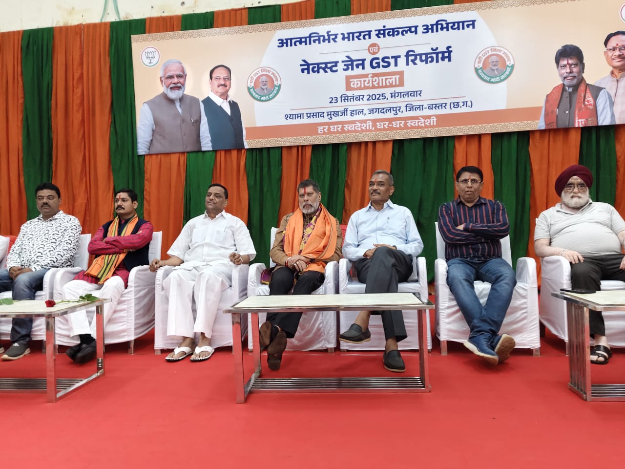 जगदलपुर@ भारतीय जनता पार्टी द्वारा आत्मनिर्भर भारत संकल्प अभियान एवं नेक्स्ट जेन GST रिफार्म कार्यशाला का संभाग स्तरीय आयोजन मंगलवार को पं.श्यामा प्रसाद मुखर्जी सभागार टाउन हॉल में किया गया। जिसमें प्रबुद्धजन, व्यापारीगण, गणमान्य नागरिक मौजूद रहे। कार्यशाला में भाजपा प्रदेश अध्यक्ष किरण सिंह देव विशेष रूप से शामिल हुये। संभाग स्तरीय कार्यशाला में केन्द्र सरकार द्वारा किये गये GST सुधार पर विस्तृत चर्चा की गयी और GST 2.0 को आमजनता को राहत देने व भारत को आत्म निर्भर व सशक्त बनाने की दिशा में ऐतिहासिक कदम बताया और प्रधानमंत्री नरेंद्र मोदी के राष्ट्र हित निर्णय का अभिनंदन करते हुये उनके प्रति आभार व्यक्त किया गया।