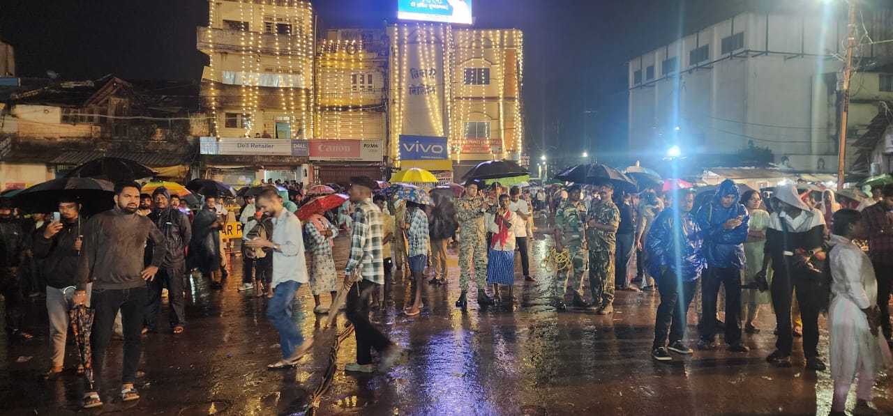 जगदलपुर =2 अक्टूबर विश्व प्रसिद्ध 75 दिवसीय बस्तर दशहरा पर्व के प्रमुख अनुष्ठानों में से एक भीतर रैनी की रस्म गुरुवार को पूरी हुई। इस दौरान भव्य आठ चक्कों वाले विजय रथ की परिक्रमा हुई, जिसे खींचने के लिए कोड़ेनार और किलेपाल क्षेत्र के दूर-दराज के गाँवों से बड़ी संख्या में आदिवासी जन जुटे और बारिश के बावजूद रथ को बड़े उत्साह के साथ खींचा।