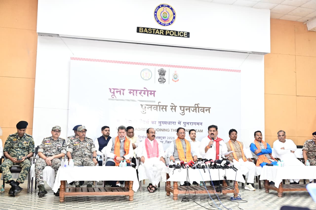 जगदलपुर = 17 अक्टूबर प्रदेश के मुख्यमंत्री विष्णु देव साय ने जगदलपुर में प्रेसवार्ता को सम्बोधित करते हुए इस दिन को बस्तर समेत छत्तीसगढ़ और पूरे देश के लिए महत्वपूर्ण बताया । श्री साय ने कहा कि रास्ता भटककर समाज से अलग हो चुके लोग आज गांधी जी के अहिंसा के विचार और सरकार के पुनर्वास नीति पर विश्वास कर मुख्यधारा में लौटे हैं। अपने समाज में लौटे हैं। उन सभी को मेरी हार्दिक बधाई एवं शुभकामनाएं। श्री साय ने कहा कि बड़ा दुःख होता है कि नक्सलवाद के कारण मरने वाले और मारने वाले दोनों को बहुत तकलीफ हुई। हमने सतत अध्ययन कर केंद्रीय गृहमंत्री अमित शाह के मार्गदर्शन में बेहतर से बेहतर पुनर्वास नीति तैयार की। इसी का परिणाम है कि आज माओवाद का रास्ता छोड़कर विकास की धारा से जुड़ रहे हैं।