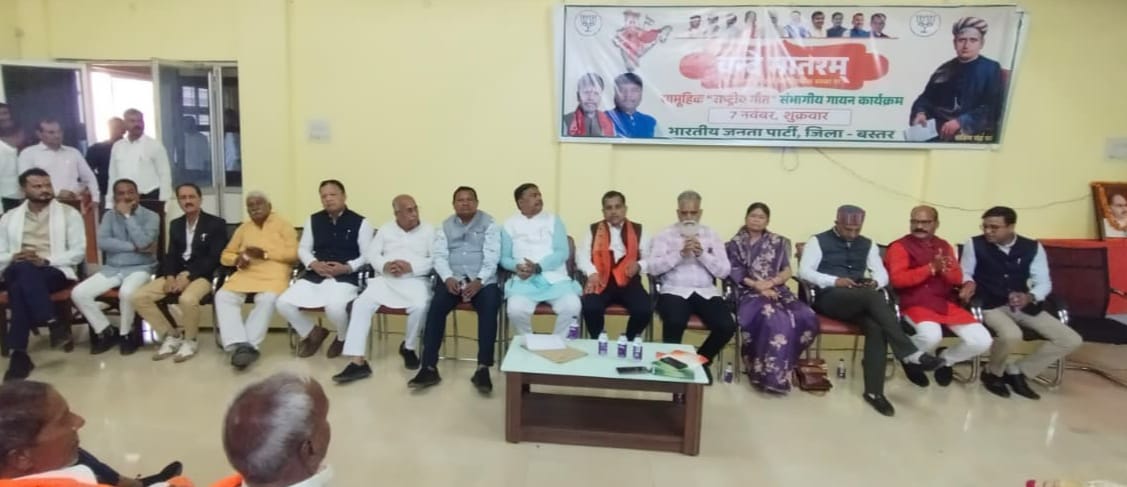 जगदलपुर = राष्ट्र गीत वन्देमातरम् के 150 वर्ष पूर्ण होने के अवसर पर आज शुक्रवार को भारतीय जनता पार्टी जिला कार्यालय में सामूहिक वन्देमातरम् गायन का आयोजन किया गया। जिसमें विशेष रूप से कैबिनेट मंत्री केदार कश्यप शामिल हुये।इस मौके पर मंत्री केदार कश्यप ने कहा कि वंदेमातरम सिर्फ गीत नहीं वरन् भारत की आत्मा और राष्ट्र भाव का शाश्वत मंत्र है।