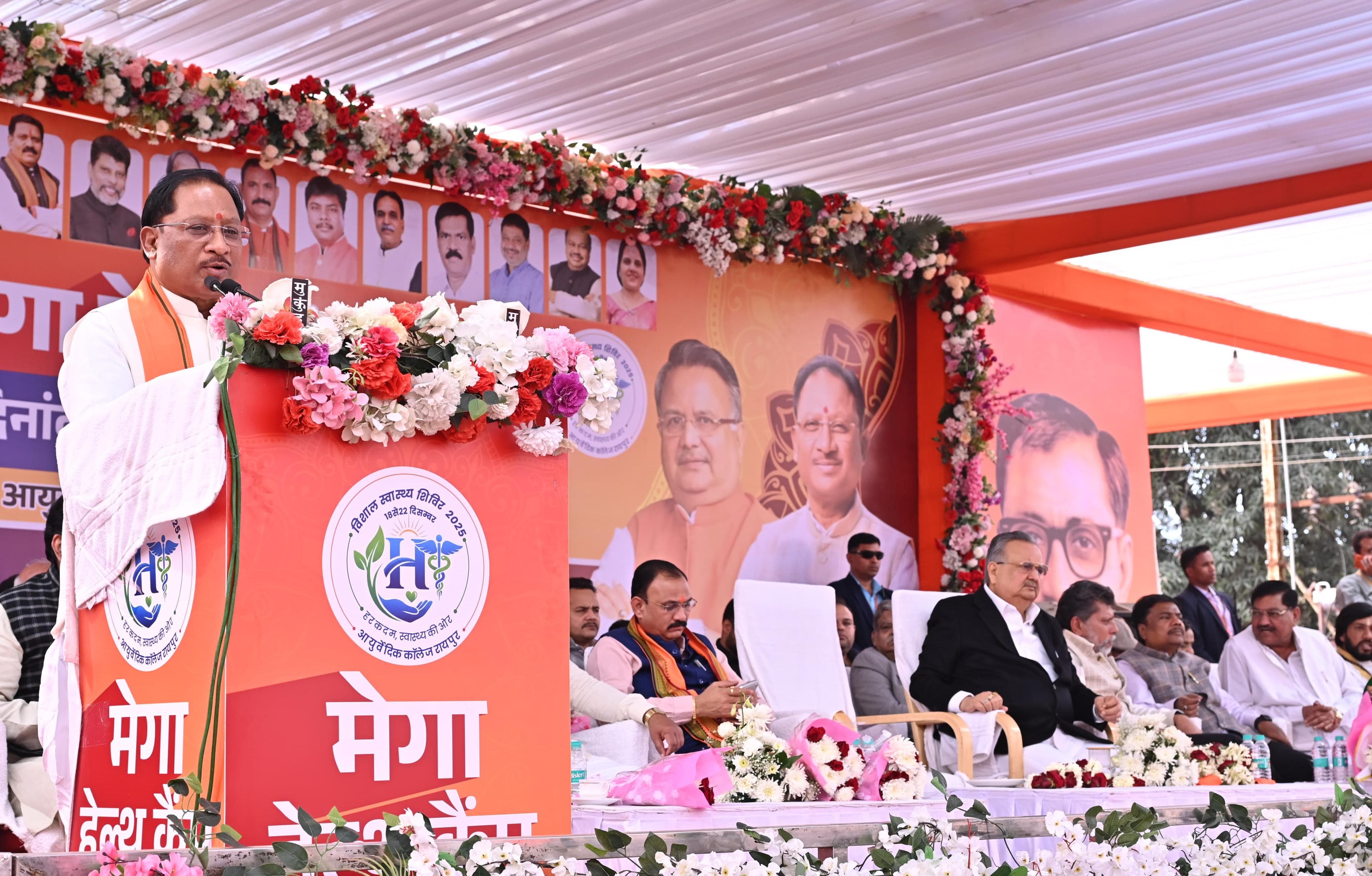 रायपुर =18 दिसंबर 2025/ मुख्यमंत्री विष्णु देव साय ने परम् पूज्य बाबा गुरु घासीदास जी की जयंती के पावन अवसर पर राजधानी रायपुर में मानव सेवा, सामाजिक समरसता और स्वास्थ्य जागरूकता के लिए आयुर्वेदिक कॉलेज परिसर में 18 से 22 दिसंबर तक आयोजित 5 दिवसीय निःशुल्क मेगा हेल्थ कैम्प 2025 का भव्य शुभारंभ किया।