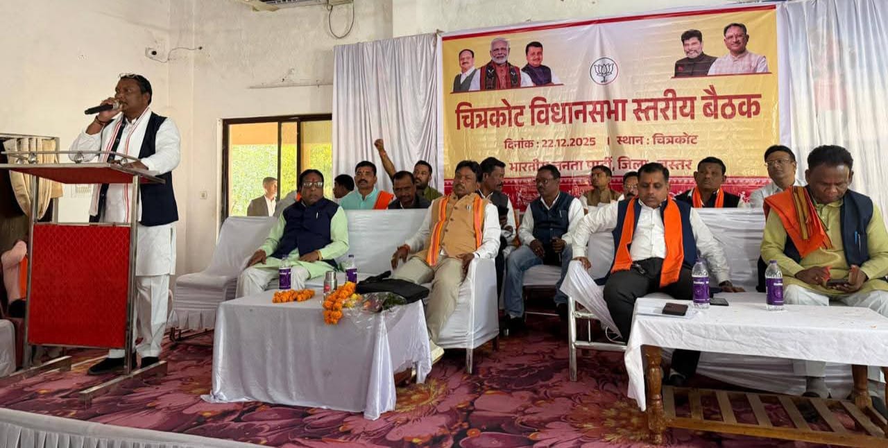 जगदलपुर =भारतीय जनता पार्टी द्वारा अपने कार्यकर्ताओं की सक्रियता बढा़ने और पार्टी के कार्यक्रमों को गति देने निरंतर बैठकें हो रही है। भाजपा ने आज सोमवार को चित्रकोट लोहण्डीगुड़ा में चित्रकोट विधानसभा स्तरीय बैठक का विशाल आयोजन किया। जिसमें सांसद महेश कश्यप, बस्तर जिला संगठन प्रभारी सतीश लाटिया, भाजपा जिला अध्यक्ष वेदप्रकाश पाण्डेय, विधायक विनायक गोयल प्रमुख रूप से मौजूद रहे। जिन्होंने कार्यकर्ताओं को केन्द्र और प्रदेश की भाजपा सरकार की जनहित की योजनाओं का अधिक से अधिक लाभ ग्रामीण क्षेत्र के लोगों तक पहुँचाने के लिये कहा व जनता से सतत् संपर्क बनाने जोर दिया।