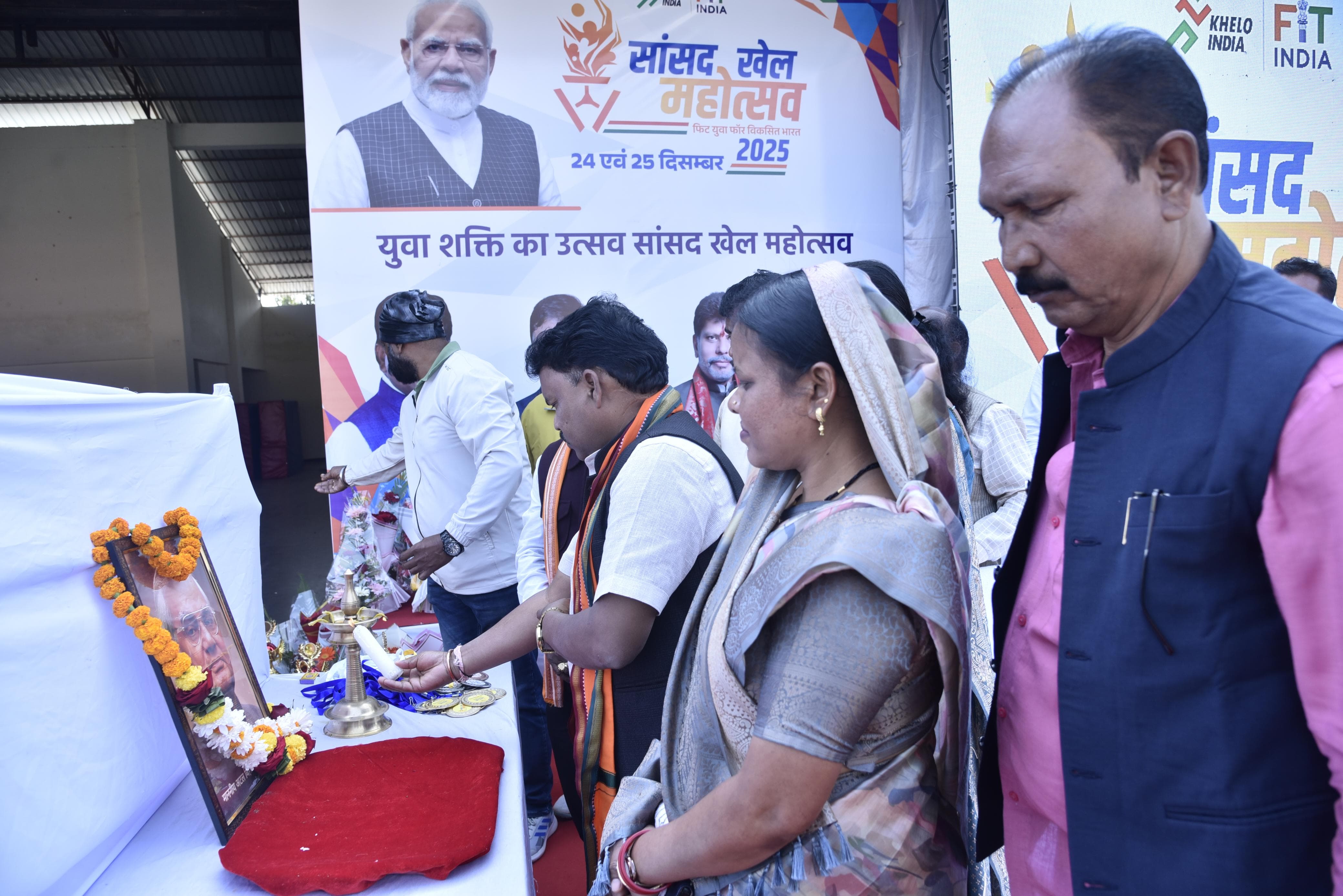 जगदलपुर =25 दिसम्बर 2025/ स्थानीय धरमपुरा स्थित क्रीड़ा परिसर में चल रहे ‘सांसद खेल महोत्सव’ का बुधवार को भव्य समापन हुआ। पूर्व प्रधानमंत्री भारत रत्न स्वर्गीय अटल बिहारी वाजपेयी की जयंती के अवसर पर आयोजित इस समारोह में मुख्य अतिथि बस्तर सांसद महेश कश्यप ने विजेता प्रतिभागियों को पुरस्कृत कर उनका उत्साहवर्धन किया। इस दौरान उन्होंने युवाओं को राष्ट्र निर्माण में अपनी भूमिका सुनिश्चित करने और खेलों के माध्यम से अपना भविष्य संवारने का मंत्र दिया।