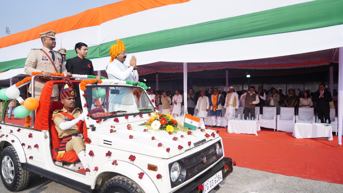 जगदलपुर =26 जनवरी 2026 /प्रदेश के उप मुख्यमंत्री अरूण साव ने 77 वें गणतंत्र दिवस के अवसर पर जगदलपुर के लालबाग में आयोजित मुख्य समारोह में ध्वजारोहण कर राष्ट्रीय ध्वज को सलामी दी। इस अवसर पर उन्होंने गणतंत्र दिवस की बधाई एवं शुभकामनाएं दी। गणतंत्र दिवस समारोह में जिला पुलिस बल, केंद्रीय अर्धसैनिक बल, नगर सेना, एनसीसी, स्काउट एवं गाइड्स आदि की 14 टुकड़ियों के द्वारा सलामी दी गई।