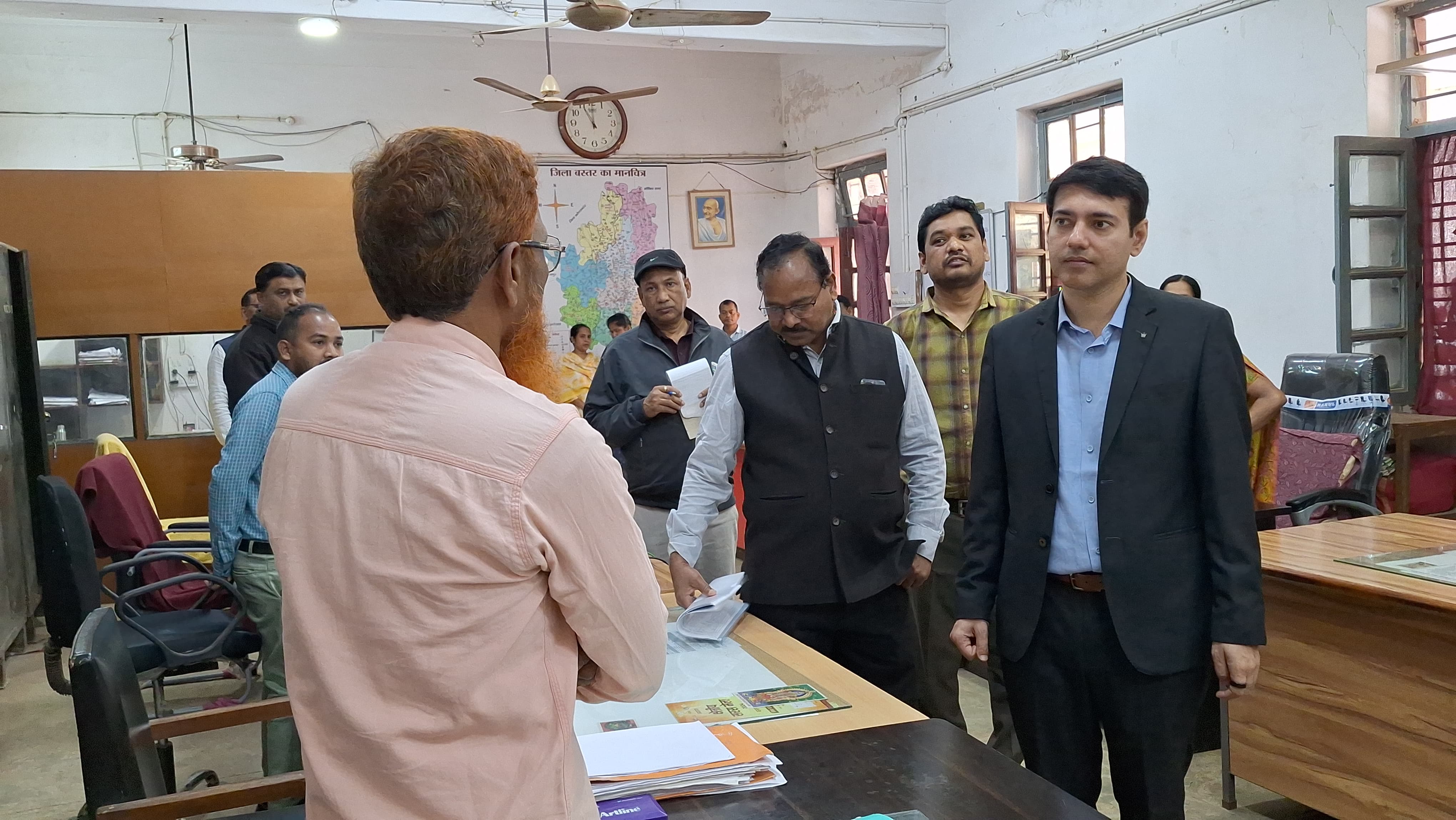 जगदलपुर 29 जनवरी 2026/ कलेक्टर आकाश छिकारा ने गुरुवार की सुबह कलेक्टर कार्यालय और संयुक्त कार्यालय में संचालित विभिन्न विभागों के कार्यालयों का औचक निरीक्षण किया। निरीक्षण के दौरान उन्होंने कार्यालय में अधिकारी और कर्मचारियों की उपस्थिति शासन द्वारा निर्धारित समय पर उपस्थित होने के निर्देश दिए।