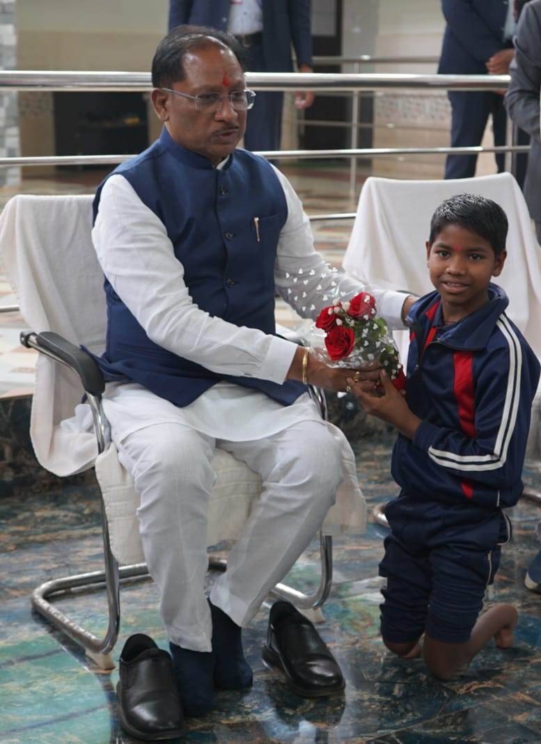 रायपुर = 31 जनवरी 2026/ मुख्यमंत्री श्री विष्णु देव साय आज नारायणपुर जिले के गरांजी स्थित परीयना दिव्यांग आवासीय विद्यालय में अचानक छात्रों के बीच पहुंचे। विद्यालय पहुंचने पर संस्था में अध्ययनरत दिव्यांग छात्र रंजीत बड्डे सहित विशेष आवश्यकता वाले बच्चों ने मुख्यमंत्री का आत्मीय स्वागत किया। इस अवसर पर बच्चों द्वारा स्वागत गीत, हनुमान चालीसा एवं बस्तर अंचल के पारंपरिक गीतों की सुंदर प्रस्तुति दी गई, जिसने उपस्थित सभी अतिथियों को मंत्रमुग्ध कर दिया। बच्चों की मांग पर मुख्यमंत्री श्री साय ने विद्यालय को एक बस उपलब्ध कराने की घोषणा की।