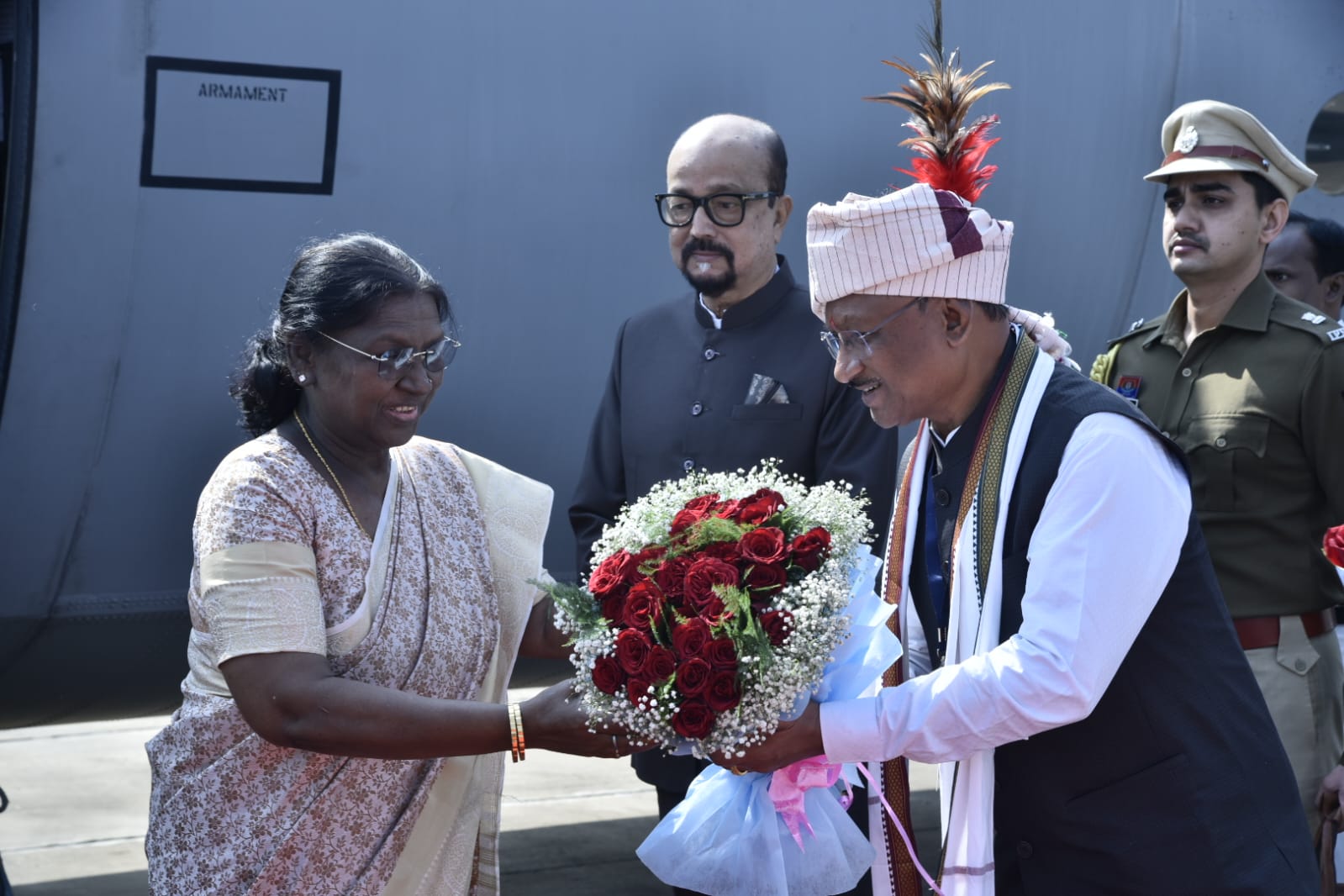 राष्ट्रपति द्रौपदी मुर्मू का जगदलपुर के मां दंतेश्वरी एयरपोर्ट में आत्मीय स्वागत
