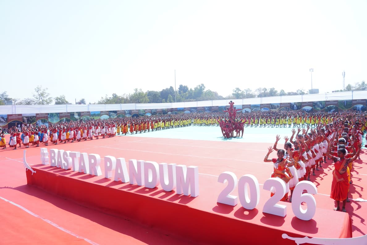 जगदलपुर =9 फरवरी 2026/ प्राकृतिक सौंदर्य से भरा बस्तर संभाग और इस खूबसूरती को एक गाने में पिरोया गया है जो “ऐसा जादू है मेरे बस्तर में”। संभाग स्तरीय बस्तर पण्डुम 2026 के समापन समारोह में शामिल होने पहुंचे केंद्रीय गृहमंत्री श्री अमित शाह के स्वागत में जगदलपुर के हजारों स्कूली बच्चों के द्वारा “ऐसा जादू है मेरे बस्तर में” गाने में सांस्कृतिक कार्यक्रम प्रस्तुति दी। स्कूली बच्चों की शानदार प्रस्तुति ने केंद्रीय गृहमंत्री को भी ताली बजाकर कर बच्चों की हौसला अफजाई करने के लिए मजबूर कर दिया।