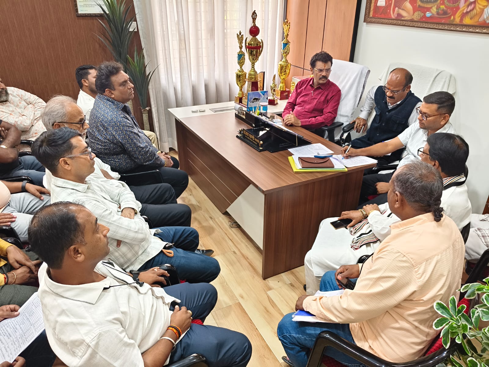 जगदलपुर:- नगर निगम कार्यालय में संजय बाजार व्यापारी कल्याण संघ के पदाधिकारियों एवं सदस्यों ने संघ के अध्यक्ष पंकज सिंघल के नेतृत्व में महापौर संजय पांडेय से मुलाकात कर बाजार से जुड़े विभिन्न मुद्दों पर विस्तृत चर्चा की। बैठक के दौरान संजय बाजार की व्यवस्थाओं को बेहतर बनाने, सफाई व्यवस्था, मटन मार्केट के संचालन तथा यूजर चार्ज को लेकर फैलाई जा रही भ्रांतियों जैसे महत्वपूर्ण विषयों पर विचार-विमर्श किया गया।