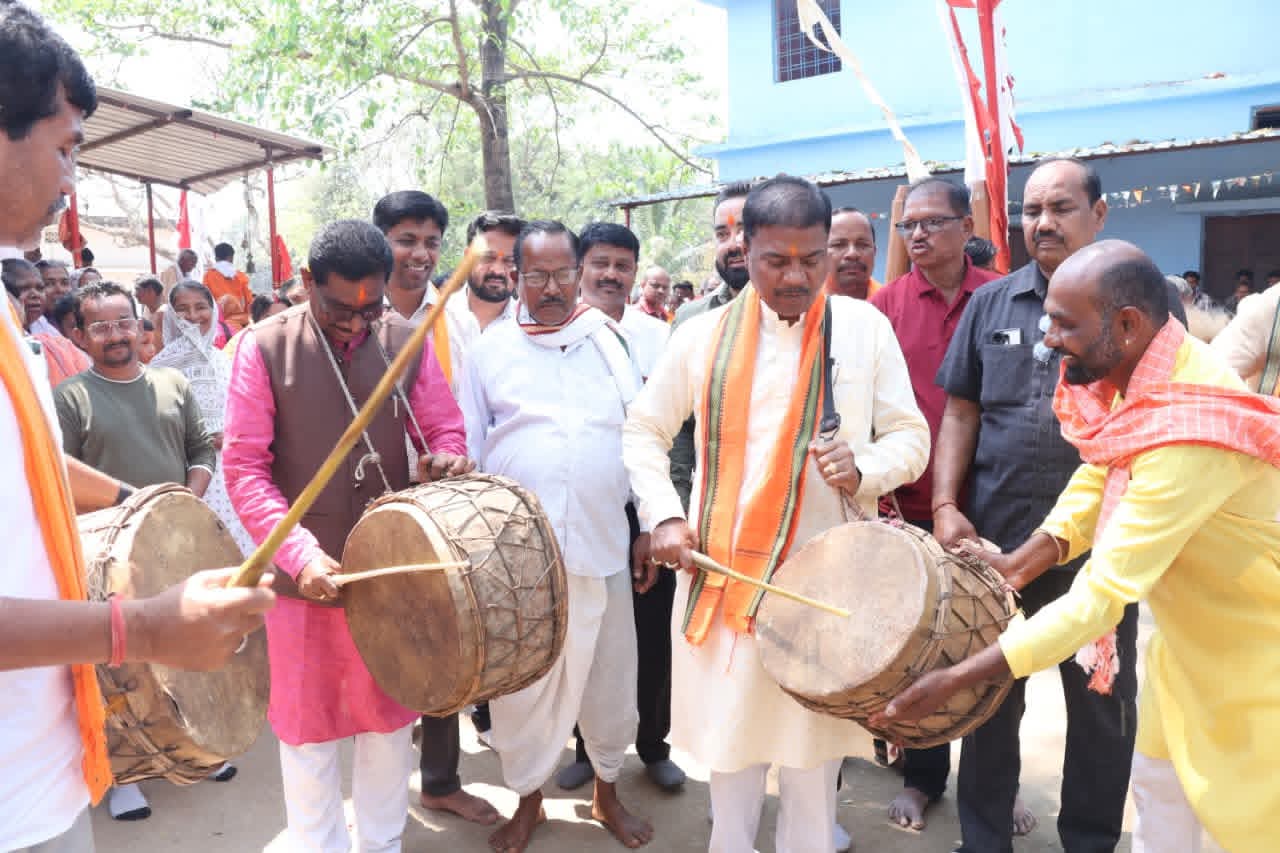 इसके बाद मंत्री श्री कश्यप शीतला मंदिर पहुंचे, जहां उन्होंने माता शीतला के दर्शन कर पूजा-अर्चना की। इस अवसर पर वे श्रद्धा और उत्साह के साथ ढोल तथा पारंपरिक तोड़ी बाजा बजाते हुए भी नजर आए। मंत्री के इस सहज और भक्तिमय रूप को देखकर उपस्थित श्रद्धालुओं और कार्यकर्ताओं में भी विशेष उत्साह देखने को मिला तथा पूरा परिसर भक्तिमय माहौल से गूंज उठा।