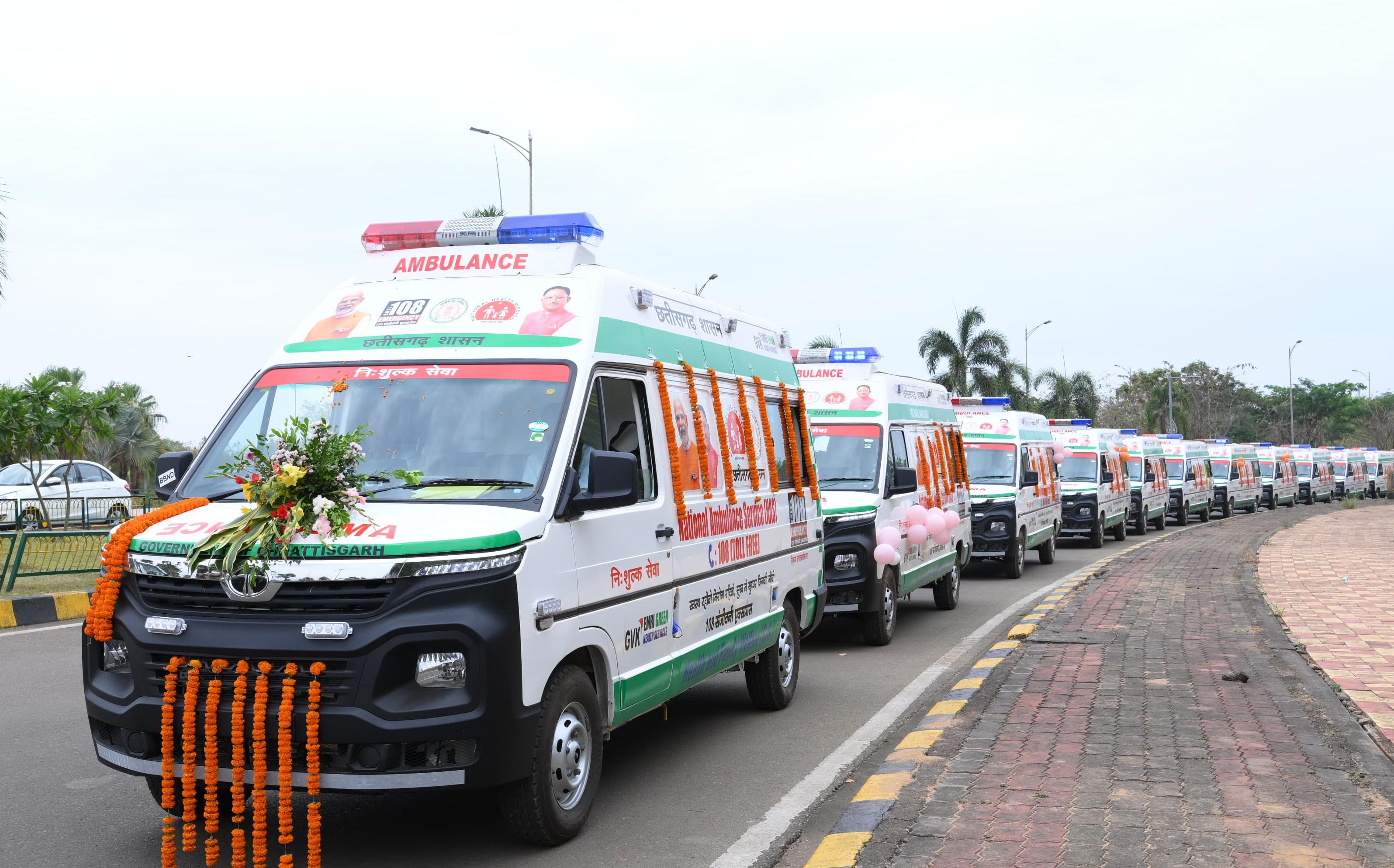 रायपुर =31 मार्च प्रदेश में आपातकालीन स्वास्थ्य सेवाओं को और अधिक सुदृढ़ और प्रभावी बनाने की दिशा में आज एक ऐतिहासिक पहल की गई। मुख्यमंत्री श्री विष्णुदेव साय ने 300 बेसिक लाइफ सपोर्ट (BLS) एवं 70 एडवांस्ड लाइफ सपोर्ट (ALS) एम्बुलेंसों को हरी झंडी दिखाकर प्रदेश के सभी जिलों के लिए रवाना किया। इसके साथ ही 108 एम्बुलेंस की समस्त सेवाएं प्रदेशभर में तत्काल प्रभाव से प्रारंभ हो गई हैं, जिससे आपातकालीन परिस्थितियों में नागरिकों को त्वरित एवं गुणवत्तापूर्ण चिकित्सा सहायता सुनिश्चित होगी।