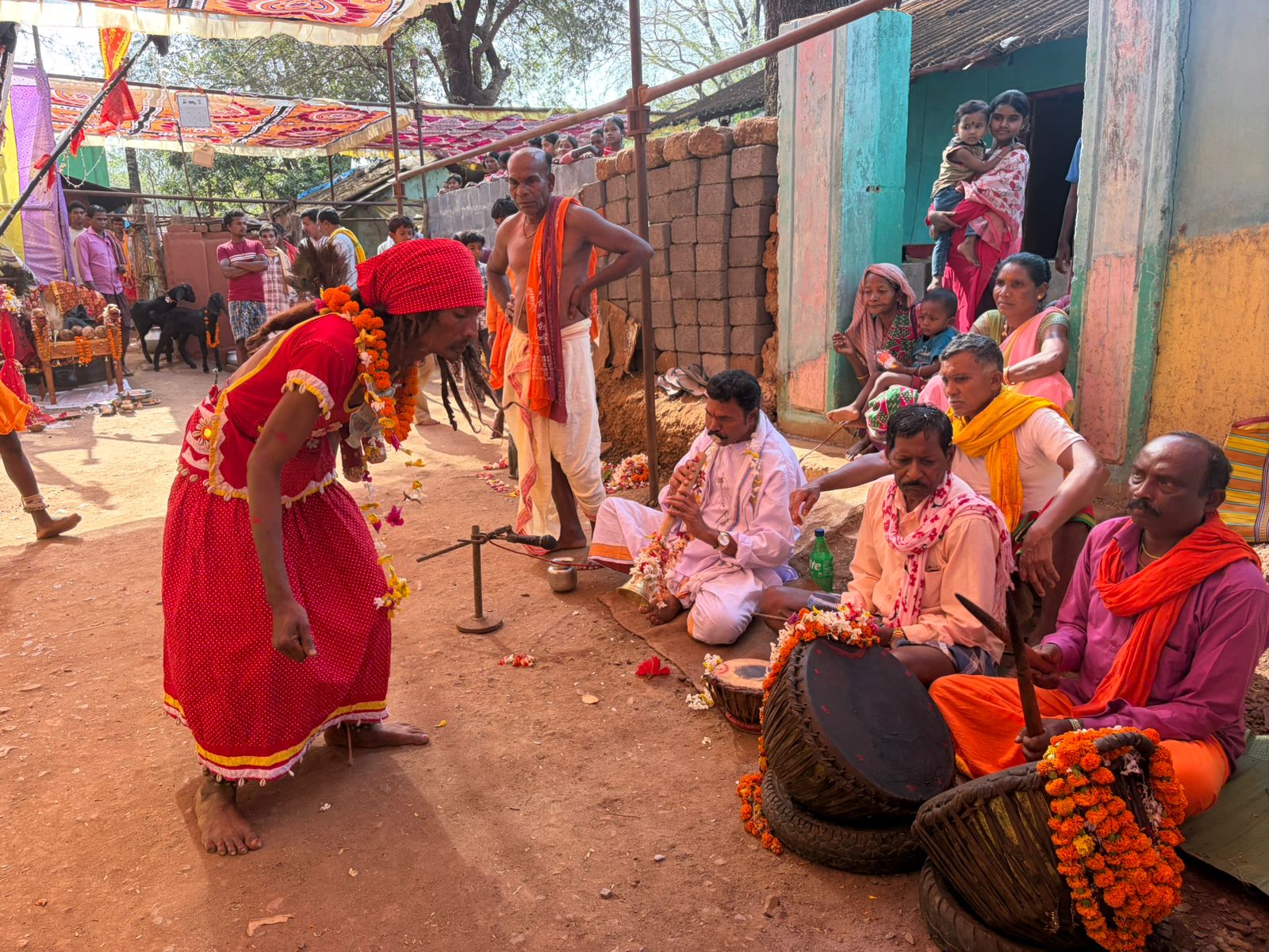 धार्मिक विधानों के क्रम में जतरा सेवा के दौरान दुवार मुण्डेया देवता, परदेसिन माता और अन्य स्थानीय देवी-देवताओं को प्रसन्न करने हेतु बलि पूजा का भी प्रावधान संपन्न किया गया। इस दौरान वातावरण तब और भी प्रभावमयी हो उठा जब वादकों ने विभिन्न देवताओं को समर्पित विशिष्ट धुनें छेड़ीं। बादल संस्था के प्रशासक आशुतोष ठाकुर के मार्गदर्शन में पहुँची टीम ने इन दुर्लभ वाद्य धुनों, पूजा पद्धतियों और पारंपरिक नृत्यों को फोटो व वीडियो के माध्यम से संकलित किया, ताकि बस्तर की इस अमूर्त सांस्कृतिक विरासत को संरक्षित किया जा सके।