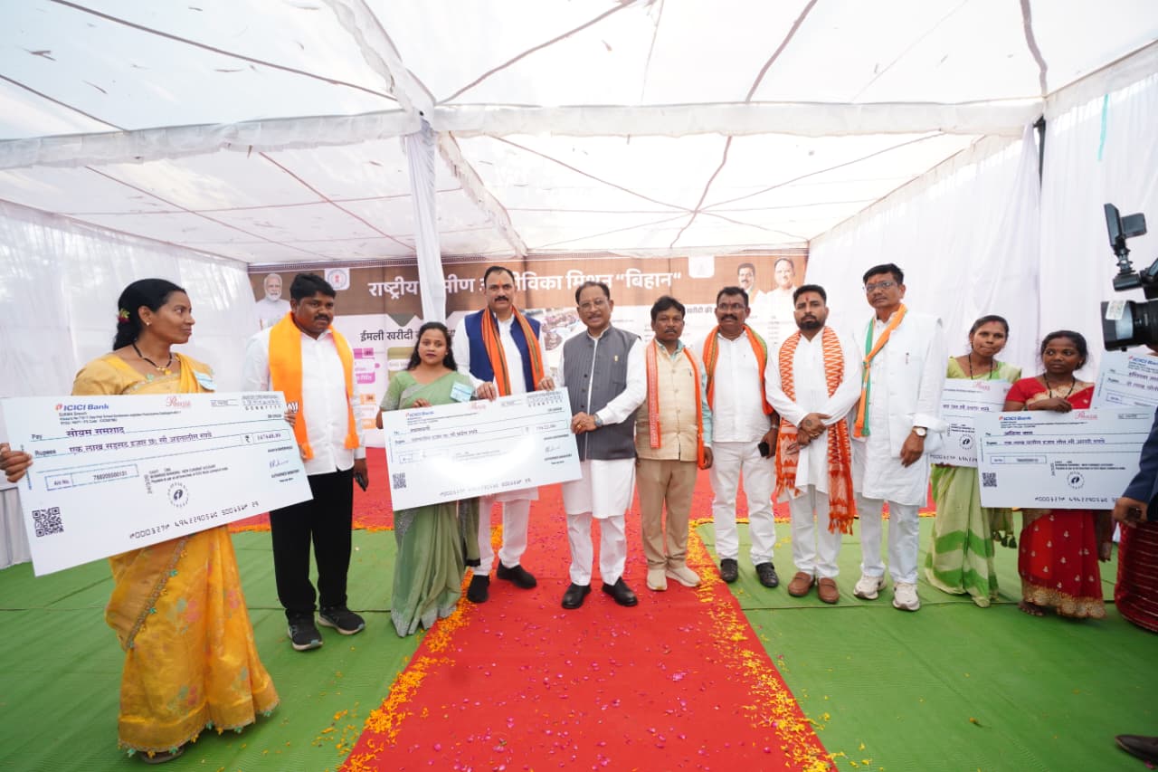कार्यक्रम के दौरान मुख्यमंत्री विष्णुदेव साय ने इमली खरीदी से जुड़े 9 स्व-सहायता समूहों की दीदियों को कुल 10 लाख 16 हजार 459 रुपए की राशि का चेक वितरण किया।